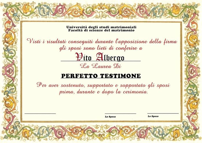 Ciao ragazze!!!! Pensavo di creare degli attestati per i testimoni da rilasciare a loro durante il ricevimento!!!idee .... Si accettano consigli e link utili......grazieeee