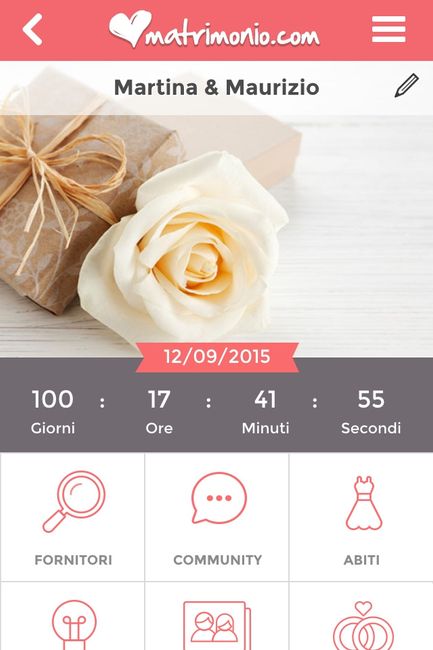 3973 giorni faDa oggi per chi come me si sposa il 12 settembre sono -100!!!! A che punto siete con i preparativi?