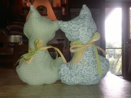 Questi sono i prototipi (da perfezionare...) delle bomboniere che ho deciso di fare...sono dei gattini fermaporta...per quante bomboniere classiche abbia visto, nessuna mi piace come loro...ovviamente poi li farò in stoffa neutra e avranno nasino ed...