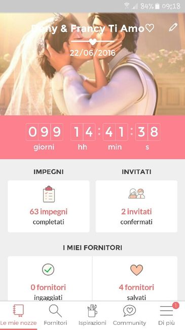 3697 giorni faAlle 12,30 saremo marito e moglie, stanotte nn ho dormito nulla ho l ansia x.cosa poi è solo una firma quella che faremo oggi..... al grande giorno manca sempre meno: