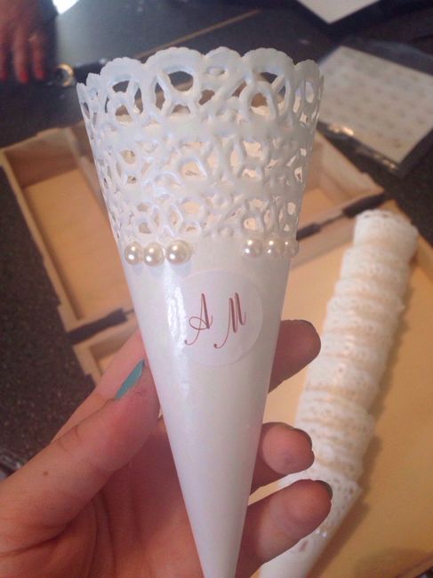 un'altra giornata produttiva... E iniziamo a depennare dalla lista delle cose da fare! Coni portaconfetti e libretto messa!