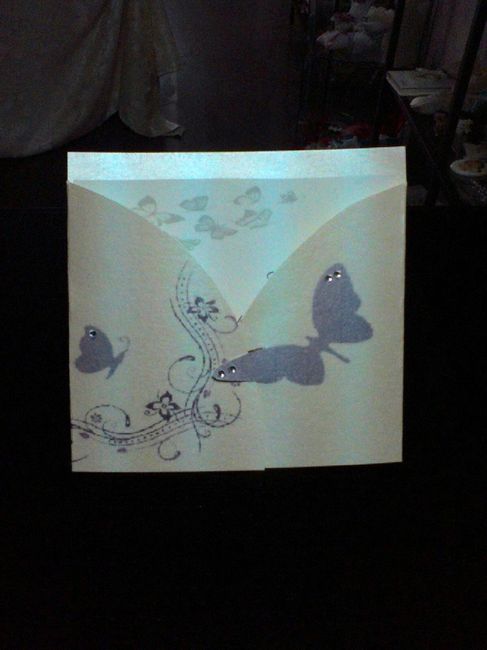 La foto non rende la carta é perlata e le farfalle lilla...l apertura é dalla farfalla
