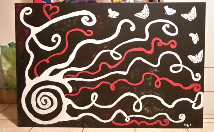 Care amike fino all'ultimo ci ho pensato e ripensato se pubblicarlo o no perché può sembrare banale ma i miei dipinti li vedo come una cosa intima, xo visto ke l'ho creato x la nostra casetta volevo farvelo vedere perché dopo due giorni di duro...