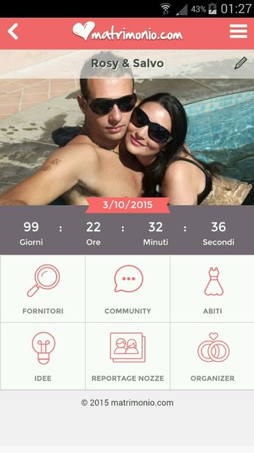 Ragazze nn posso crederci siamo anke noi arrivati a -99 giorni, sn troppo felice un sogno ke diventa realtà *_*