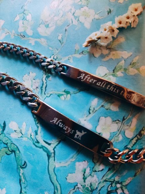 Abbiamo alcune idee , per ora siamo indecisi su queste (tutte con l'aggiunta della data del matrimonio) La prima sarebbe lui: After all this time? E la mia Always (è di Harry Potter ma non ci sta sul sondaggio)