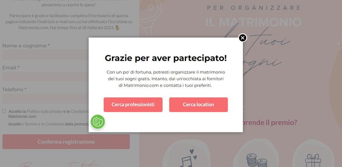 Salve a tutti, dove appare il pop up di avvenuta partecipazione al concorso per vincere 25000 euro?