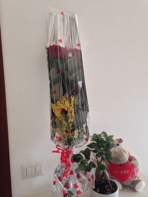 Ciao care colleghe e tanti auguri cosa vi ha regalato in questo giorno il vostro futuro marito o marito? Il mio mi ha portato questi bellissimi fiori E voi? Postate le foto se vi va'^_^