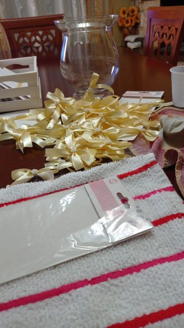 Ciao a tutte continuano i miei preparativi fai da te ahah nella prima foto vedrete ventagli con fiocco accuratamente fatto e attaccato da me fazzoletti e caramelle tutte divise e loggate (mancheranno solo le bolle di sapone e i petali che aggiungerà...