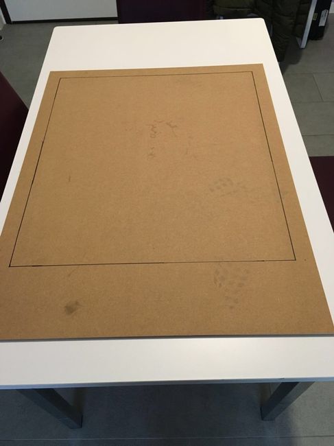 A -95 sto iniziando a darmi da fare con i fai da te.. Ho preso del compensato, ritagliato l'interno e ora ho passato la prima mano con la bomboletta bianca!! Poi penso che sotto scriverò i nostri nomi e la data... Vi terrò aggiornate