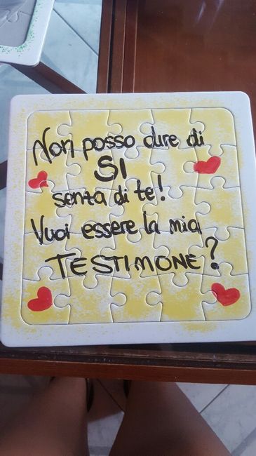 Ciao ragazze,dopo vari confronti abbiamo deciso di fare un terzo testimone a testa (il cugino di fm era troppo convinto e col cuore ci dispiaceva deluderlo bensì lo avremmo voluto con noi) così abbiamo deciso che la mia 3^ testimone sarà la mia...