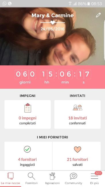 Buongiorno ragazze! Oggi il mio contatore segna -60 giorni!!! Che bello giusto due mesi! Oggi farò la prima prova acconciatura!!! Poi vi posto le foto... intanto vi lascio con lo screen del conto alla rovescia! e a voi quanto manca? A che punto...