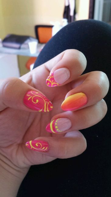 Ciao Belle! Voi come farete le unghie? Io sto facendo le prove..iil French semplice non mi piace molto..pensavo magari di aggiungere qualche brillantino invece del bianco classico...oppure aggiungere un richiamo rosso come il bouquet, magari su...