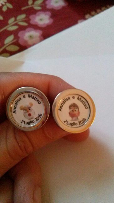 Ciao sposine! Vi piacciono i gemelli che ho fatto realizzare per fm? Sono venuti proprio come speravo, fm li ha visti e non credeva ai suoi occhi, gli piacciono da impazzire! Siamo contentissimi! Il fornitore è "Gli svitati gemelli...