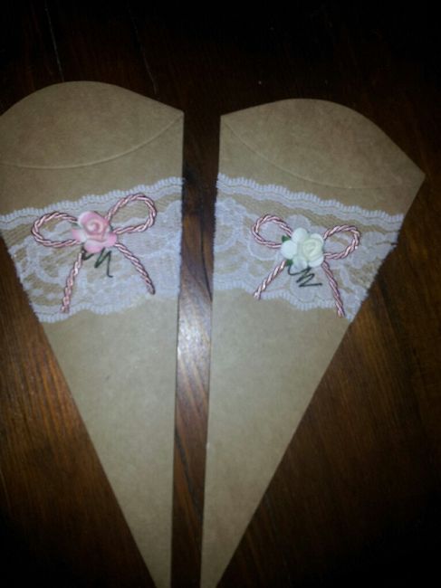 Ciao sposine... Domenica abbiamo terminato i nostri coni porta riso... Li ho gia comprati fatti abbiamo solo aggiunto il pizzo, il fiore e il fiocco... Come vi sembrano?