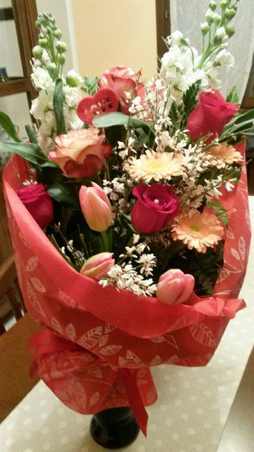 Oggi, rientrando dal lavoro, ho trovato questa sorpresa di Fm. ..visto che nel week end saremmo sempre in giro per il matrimonio. ..ha deciso di anticipare san Valentino. ..è proprio un uomo da sposare!!