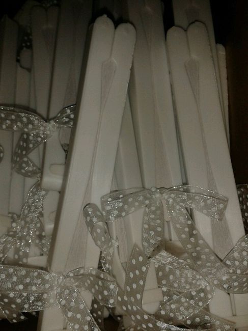 Come da titolo alla fine confrontandomi con mamma,suocera e Fm abbiamo deciso che così sono più fini.. un po' in negozio un po' sul divano ho finito di mettere i fiocchi.. ora mancano i cristallini che sono in fase di studio..i ventagli saranno...
