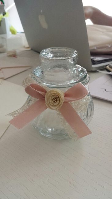 3649 giorni faRagazze buonasera, oggisns stata in giro x le bomboniere e l'unica cosa che mi potrebbe andare bene sarebbero questi barattoli cosi decorato, cosa ne pensate???