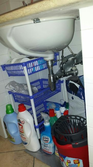 Ciao ragazze volevo un consiglio da voi..vivo da poco in una casa in affitto..il fatto è che nel bagno non mi piace proprio che non ci sia un mobiletto per i vari prodotti..vi allego una foto..secondo voi come posso coprire questo spazio?