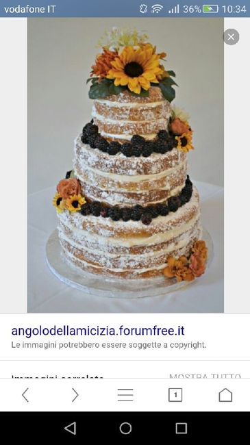 Io avevo pensato di fare 2-3 torte del genere. Le farò mettere su delle alzatine. La.classica wedding cake non m'ispira molto. E poi ci saranno circa 70 invitati, quindi non ha senso di fare una torta enorme. La vostra torta come sarà?