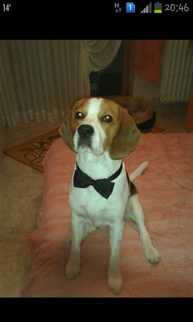 Ciao sposine,ecco la mia damigella d'onore ke mi porterà le fedi....hahaha la mia piccolina lola. Qui ha una semplice giarrettiera al collo ma dobbiamo ancora decidere che mettergli x inserire gli anelli.