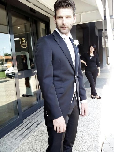 Anche il mio sposo è vestito! Questa settimana è andato a ritirare il vestito di un bellissimo blu notte (il colore è falsato nelle foto che ha fatto sua mamma!) non vedo l'ora arrivi il 9 luglio per vederlo così vestito che mi aspetta all'altare!...