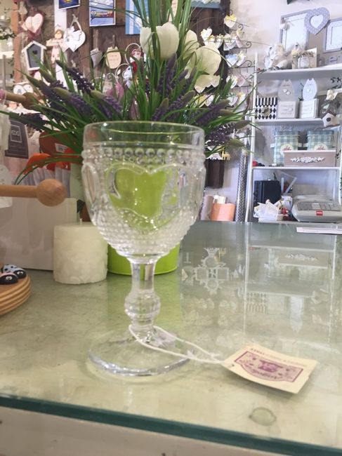 Buongiorno sposine!! Ho bisogno di una vostra opinione! Cosa ne pensate di questa bomboniera? È un calice vino con i cuori in stile country/shabby....in vetro un po' più pesantino di un normale bicchiere...vi piace? Come lo vedete? Vi sembra inutile?...