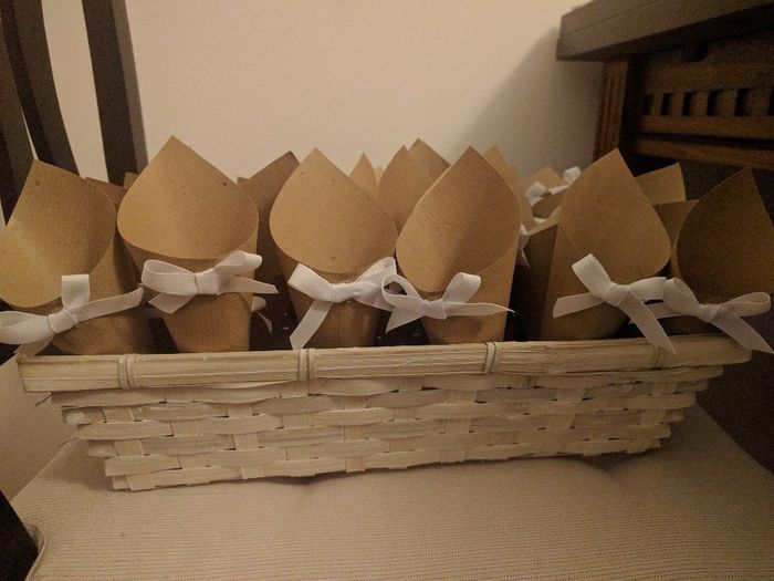 Buonasera sposine...finalmente ho terminato i coni portariso! Grazie anche all'aiuto di mamma e sorelle sono riuscita in questa prima impresa...forse non saranno tutti uguali perfetti però a me piacciono :$ spero saranno apprezzati anche dagli...