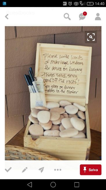 Ciao ragazze... vi scrivo x ricevere un vostro gradito consiglio.. 😊 mi piacerebbe fare una piccola cosa particolare.. vorrei che ogni invitato scrivesse a noi sposi su qualcosa (oggetto) una dedica.. xo nn ho idea di dove poter fargli scrivere...