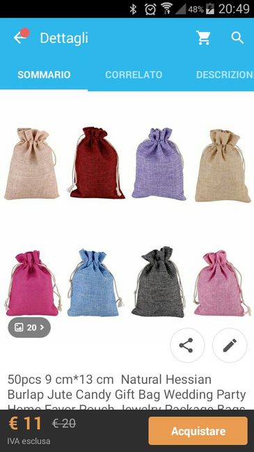 Su wish ho trovato questi sacchetti a €15 (0.30 cent/pezzo)... li vorrei prendere... qualcuna ha acquistato dei sacchetti così in altri siti a un prezzo minore? Fin ora sono i più convenienti che ho trovato