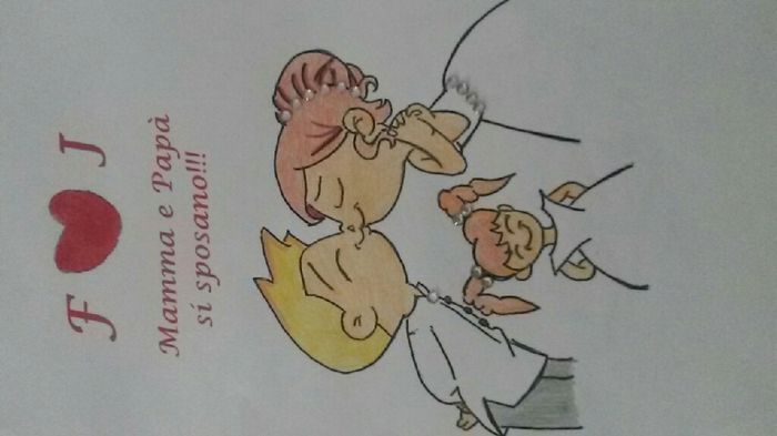 Il mio fm prendendo spunto su internet ha disegnato queste partecipazioni! Il cuore l'ha fatto mia figlia con le impronte 😍 io ne sono innamorata!!! ma non saranno un po' troppo bianche?