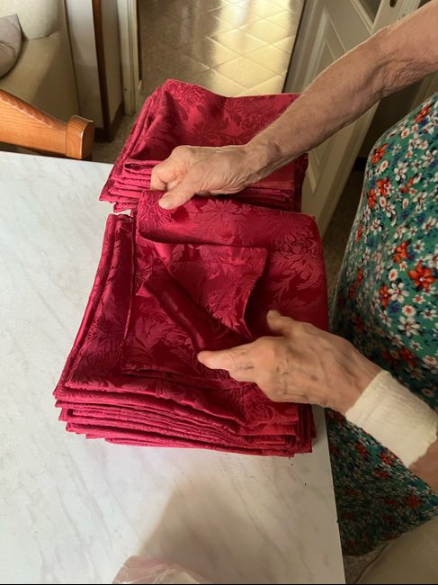 Ciaooo 😊 Purtroppo il fornitore del tovagliato,ecc…a noleggio da cui si serve la nostra location non ha più i tovaglioli su cui avevamo posato gli occhi,quindi la proprietaria ha detto a mia madre di portare pure a casa dei coprimacchia che non usano...