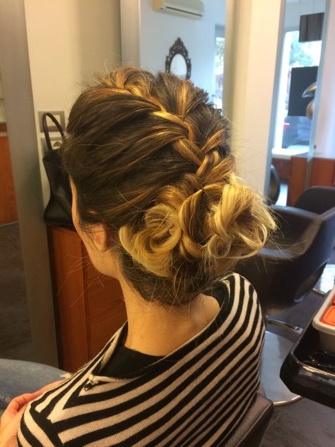Oggi sono andata dal mio parrucchiere x fare il colore e mentre discutevamo sul da farsi lui ha iniziato ad intrecciarmi i capelli e mettere delle forcine....così in 5 minuti mi ha fatto un abbozzo di acconciatura.....la parte sopra con la treccia mi...