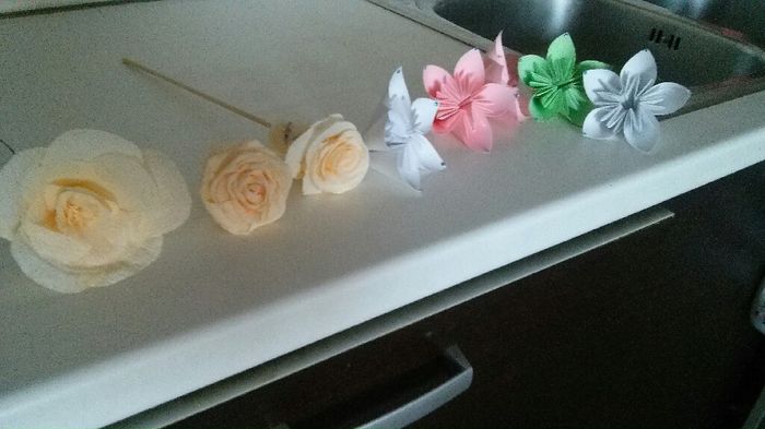 ciao sposine oggi giornata produttiva,ho iniziato a fare le prove per i fiori di carta crespa e fiori di origami quale e piu carina per preparare un buoquet ?e quali per allestire la chiesa?,premetto che e la prima volta che faccio cose del genere,...