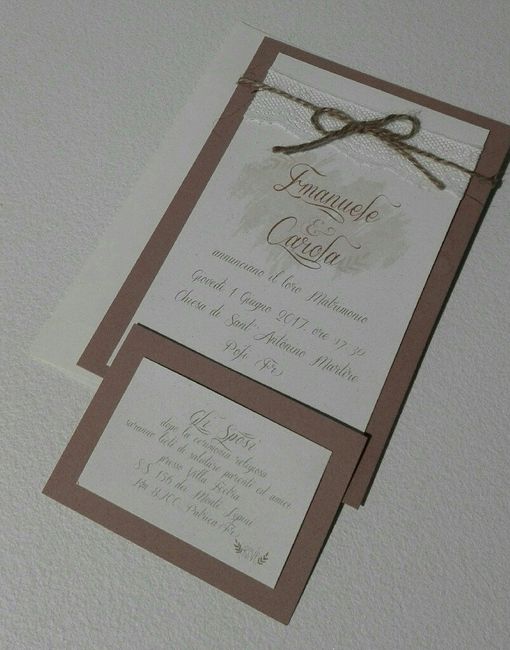 3340 giorni faRagazzeee..e anche le partecipazioni le abbiamo scelte..non vedo l'ora di averle e iniziare a consegnarle che ne dite??