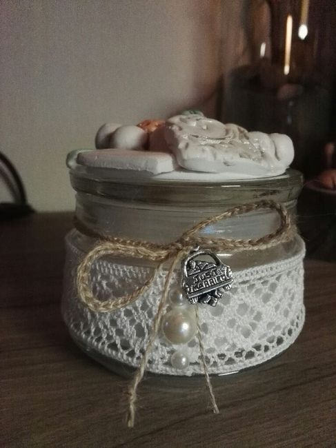Ciao ragazze,oggi ho finito la prima bomboniera...è una candela in vaso di vetro decorata interamente da me...cosa ne pensate?tutto il matrimonio sarà in stile shabby,vi metto anche la foto del "prototipo" x le partecipazioni,sul tag verranno scritti...