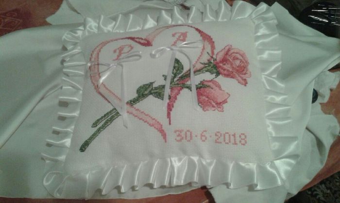Buongiorno! Oggi volevo condivere con voi il mio cuscino portafedi, realizzato da mia suocera a punto croce! Io lo adoro!!