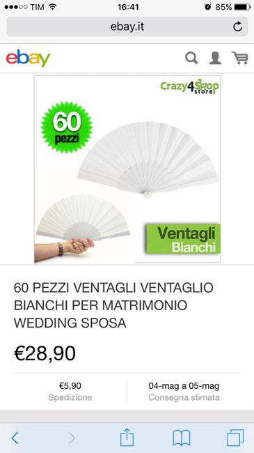 Ciao ragazze, come dice il titolo ho bisogno dei vostri preziosi consigli! Devo acquistare i ventagli e le bolle di sapone, voi dove le avete prese? E soprattutto ( ) quanto le avete pagate? Grazie mille!