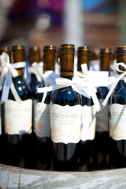 Ciao a tutte ho bisogno di un parere. Il mio fm ha pensato di fare come bomboniere una bottiglia di vino (buon vino) con infilato nel collo della bottiglia un sacchetto in pvc con dentro i confetti Rossi e Bianchi e fiocchetti abbinati, poi come...