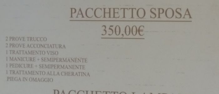 Ciao! La mia parrucchiera fà questa promozione. Secondo voi com'è? Io non ho idee di come possano essere i costi. Ci sarà dentro anche l'acconciatura il giorno delle nozze?! Ancora non gliel'ho chiesto perchè mi sembra presto(mi sposo ad ottobre). 😣 ...