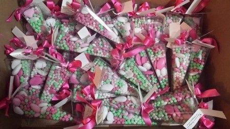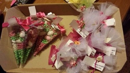 ciao ragazze eccoi coni trapsarenti con dentro delle caramelline e dei confetti e dei sacchettini per persone che non inviterò al matrimonio! Carini semplici e frizzanti secondo me!