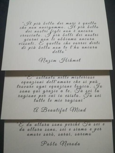 Ragazze ho appena finito di progettare un piccolo particolare a cui prima non avevo pensato....visto che le partecipazioni rimanevano bianche nel retro ho pensato di trovare qualche frase o citazioni che ci rappresentasse e trascriverla...bè ecco il...