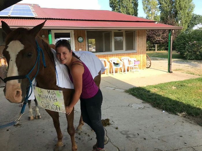 2812 giorni faQuesta volta organizzato solo da mia sorella e due mie amiche di scuderia... in giro per i boschi conciata così e poi sushi 😍 quando ho visto il mio cavallo con quel cartello mi sono commossa quasi di più di quando fm mi ha chiesto di sposarlo 😂 ...