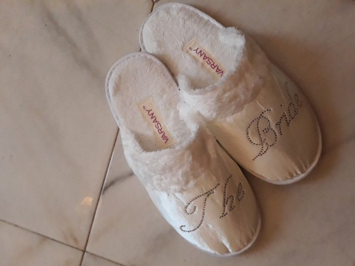 Ciao a tutte, allego foto degli acquisti fatti oggi.. Manca solo il reggiseno ma dovrò farmelo arrivare (la mia taglia non c'era).. Ho preso calze, slip e ciabattine alte per la preparazione.. Ho anche quelle basse con la scritta bride ma le userò...