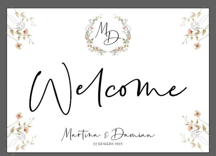 1015 giorni faAbbiamo chiesto alla grafica di farci il cartello welcome con la nostra stampa e stile del matrimonio- verrà posizionato su un cavalletto.. è semplice ma allo stesso tempo carino - vi piace? (Come più volte detto non sono brava nel fai da te quindi...