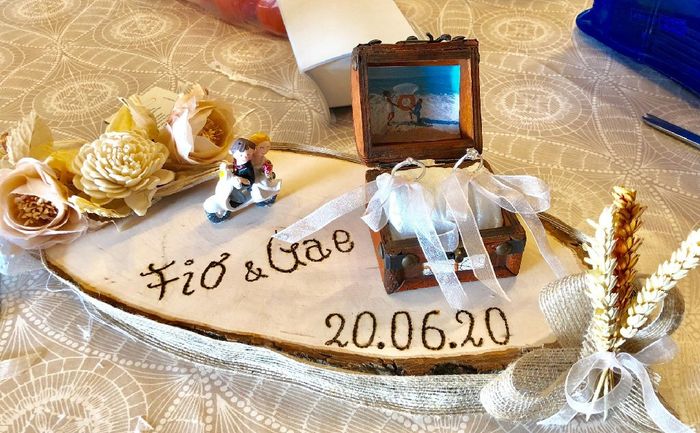 Buonasera sposine... ho scelto il tema viaggio... oggi mi sentivo creativa e con l’aiuto di fm ho fatto il porta fedi... cosa ne dite?