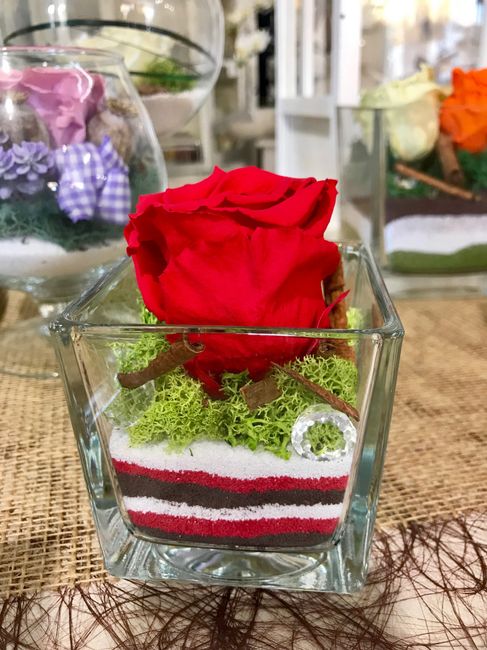 Ecco le nostre bomboniere! Saranno uguali a queste in foto, cambieremo però il colore della rosa, che saranno gialle, arancioni, corallo e rosa, quindi di più colori ma che richiamano tutte il colore del mio bouchet e in abbinato ci sarà il colore...