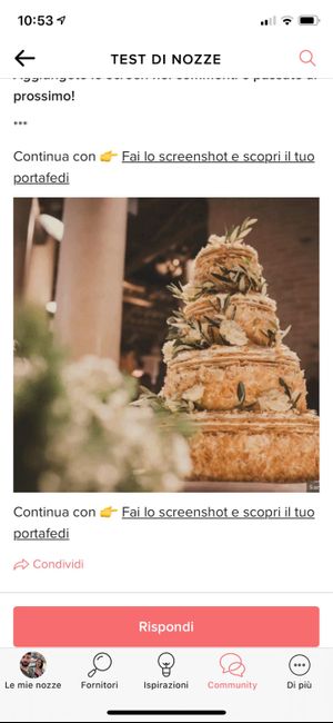 Pronti per il penultimo screenshot? 📲 Provate a lasciare al caso la scelta della vostra torta nuziale, magari vi capita proprio quella a cui stavate pensando o trovate l'ispirazione che stavate cercando!😍 Pronti? 3, 2, 1... click!👇🏻 Aggiungete lo...