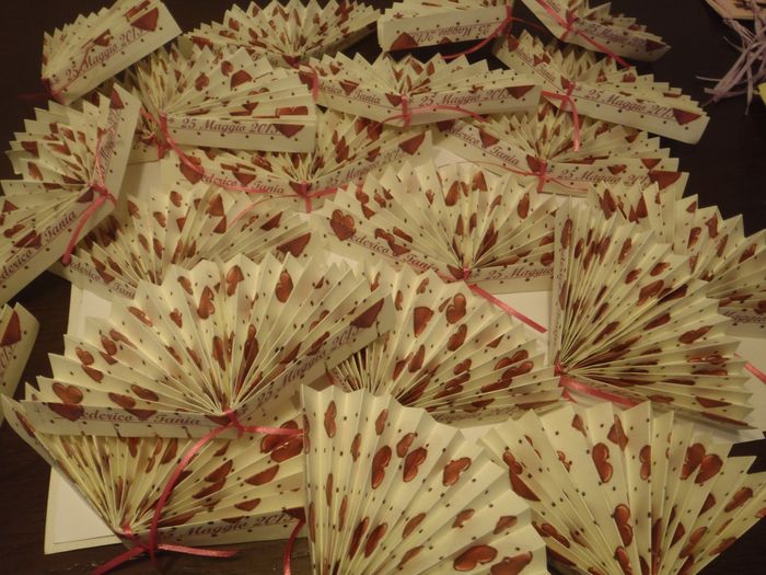 4874 giorni faDopo aver cercato gli stecchi gelato per fare i ventagli, ho deciso di cambire con questi...veloci, facili,economici e personalissimi! ho stampato l'immagine e i nostri nomi su un foglio A4, piegato il foglio a fisarmonica dalla parte più stretta,...