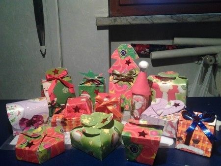 sto preparando una sorpresa al mio fm...un mega calendario dell'avvento...questi pacchetti li attaccherò ad un albero che ho creato con del cartone e poi ho ricoperto con carta lucida verde e decorato con stelline rosse...
