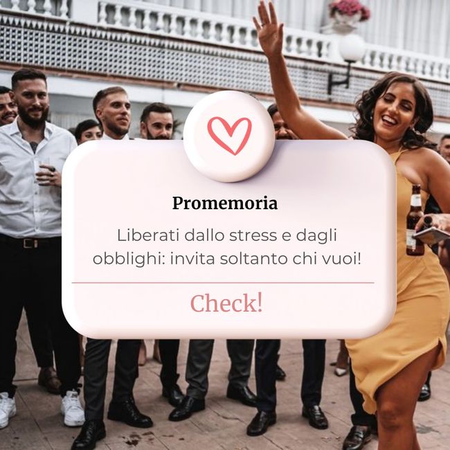 Iniziamo con il promemoria number 1! Un consiglio importantissimo che ti permetterà di goderti al massimo il giorno tanto atteso. ✨ Cosa ne pensi? Diccelo nei commenti! *** Vai al post successivo 👉 📌 Promemoria nº2 👈 Torna al post precedente: 9...
